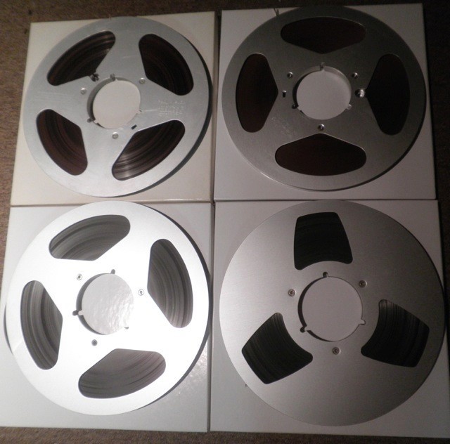 Seller’s comments: Estate sale find. 1/4″ tape on 10″ Metal reel. No name or sticker on reel. Boxes have no writing. Very Good ~ Excellent sound. I checked most OF ALL 4 TAPES. Tapes excellent / clean (not sticking / shedding etc..). Clear, not distorted (Canada live is bit on the bassy side, but a spectacular performance). Tapes 2, 3 & 4 are great 10 quality. More then 2 hours total. You’ll need a machine that plays 15 IPS 2 track.